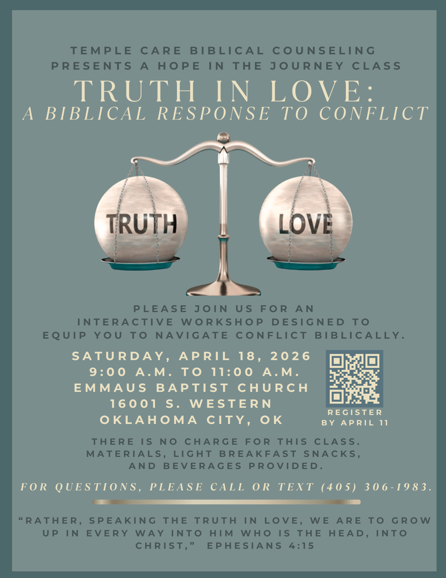 Mark your calendar for April 18, 2026, from 9:00 a.m. to 11:00 a.m. for an interactive workshop at Emmaus Baptist Church, located at 16001 S. Western Avenue, Oklahoma City, OK 73170.
